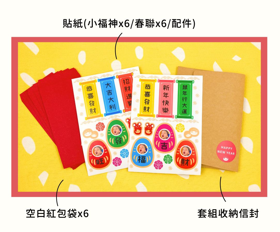【DRIZZLE 好滴】客製化福神貼紙紅包組 紅包袋、春聯小幅神貼紙共六組,都可以貼上不同的貼紙。使用義大利進口無毒墨水,媽咪可以放心讓孩子自己貼喔!