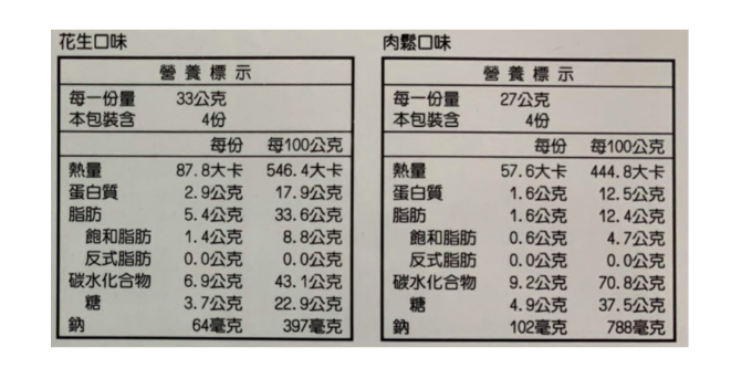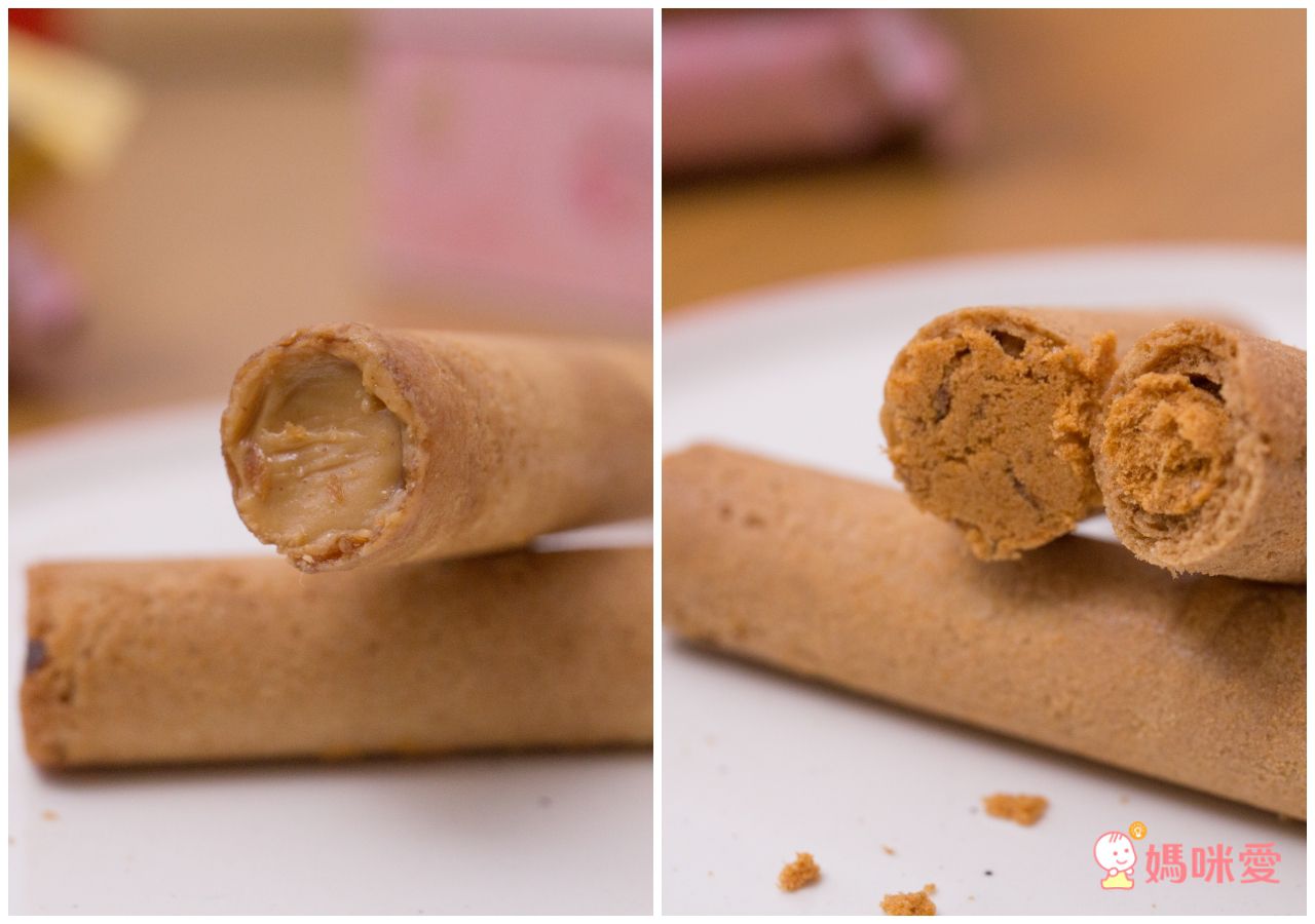花生口味成份:花生醬【花生、糖、花生油、氫化植物油(油菜籽油、棉籽油和大豆油)、鹽】、蛋捲【麵粉、砂糖、雞蛋、植物油(棕櫚油、大豆油)、全脂奶粉、食鹽、大豆卵磷脂、膨脹劑(銨粉(碳酸氫銨)、小蘇打(碳酸氫鈉)) 、食用香草香料】