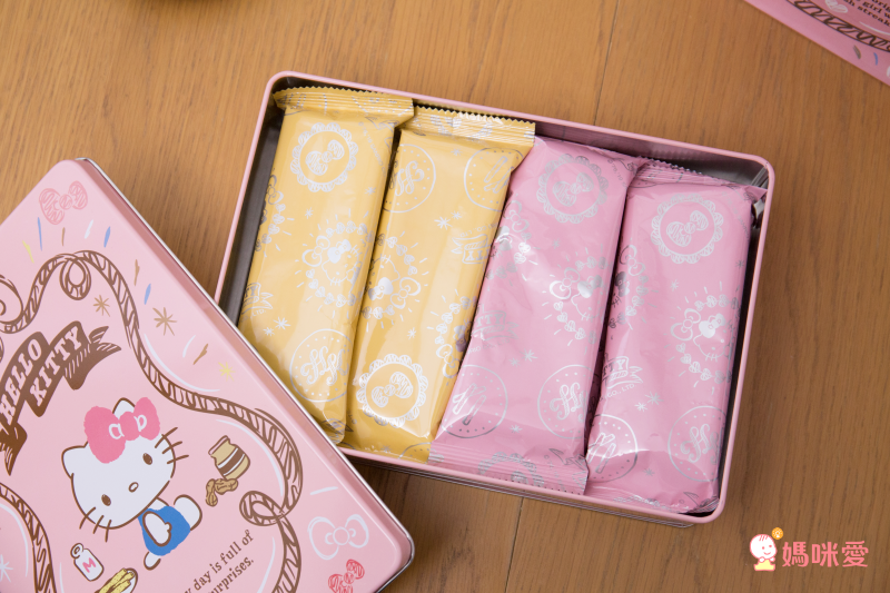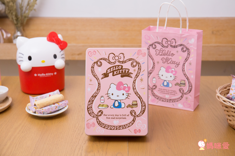 雖然說禮輕情意重,但這款巧心捲禮盒用料完全沒在手軟!連禮盒本身都是非常精緻的鐵盒,還有附贈超可愛Kitty紙袋呢!