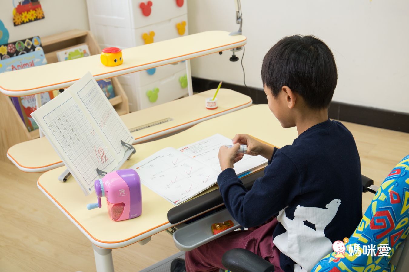 雖然還沒開始唸小學,但要用到桌子的機率也不小,孩子看書、畫畫、玩玩具都可以在桌子上進行,一方面也是提早讓孩子的姿勢能夠盡量端正喔!