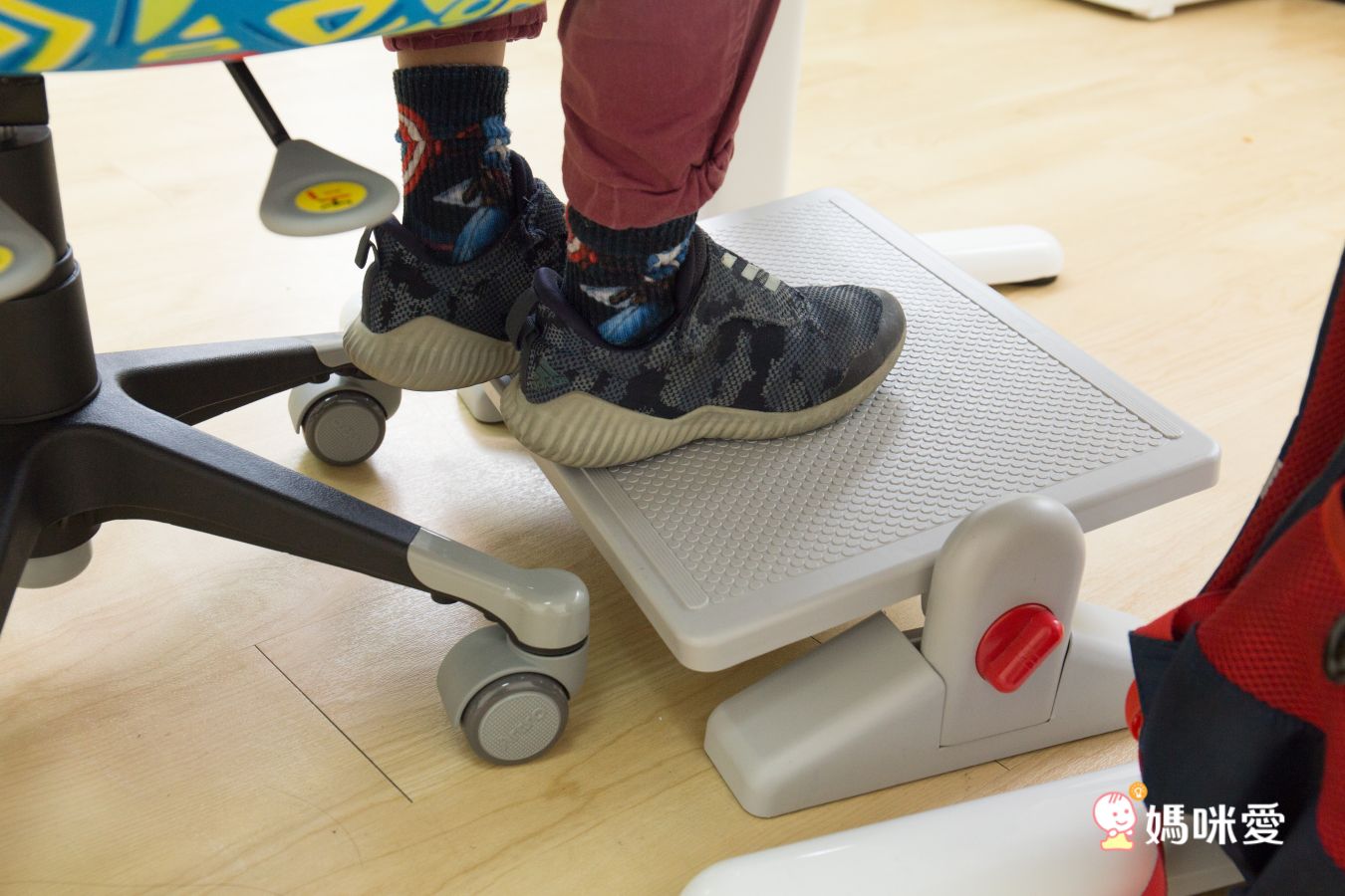 孩子在讀書時讓腳踩在腳踏墊上能夠穩住重心,減少大腿承受的壓力,也能避免孩子的腳晃來晃去,然後就越坐越歪...且能讓大腿與小腿保持在90度喔!通常中大班或低年級的孩子一定要搭配腳踏墊,才能讓腳穩穩的固定,通常都要特別另外購買,但這次亞梭超貼心地直接把腳踏墊附在學霸組中,媽咪可以放心啦!