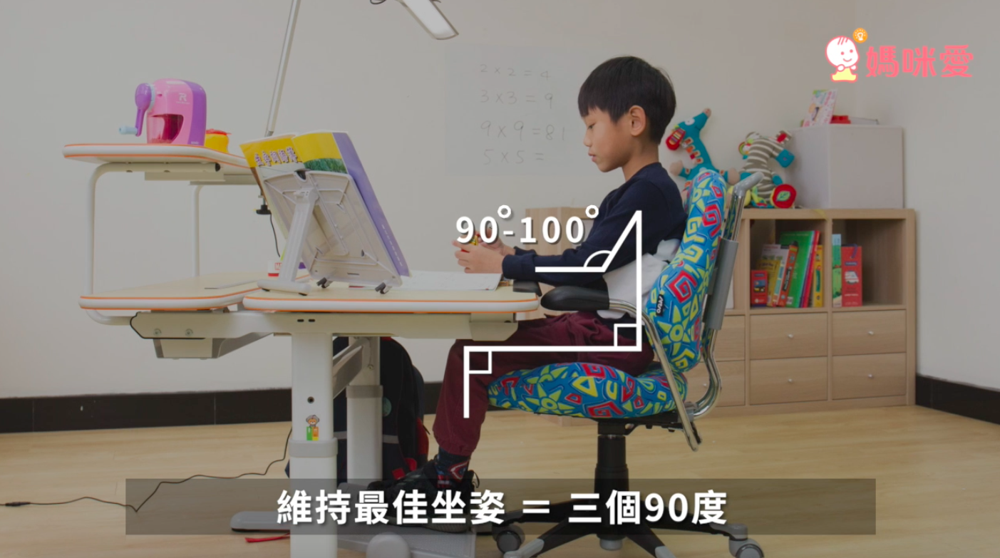 媽咪知道嗎?正確坐姿是要符合3個90度:分別為手肘、膝蓋、軀幹與大腿(如圖)