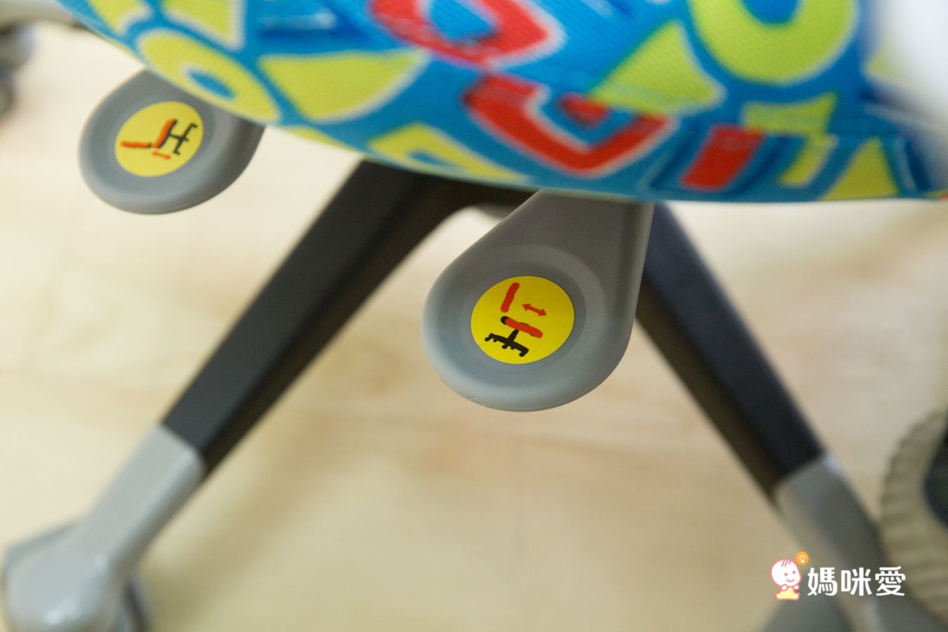 上面都有清楚的圖示告訴媽咪,哪個把手是調整椅子高度或坐墊深度喔~