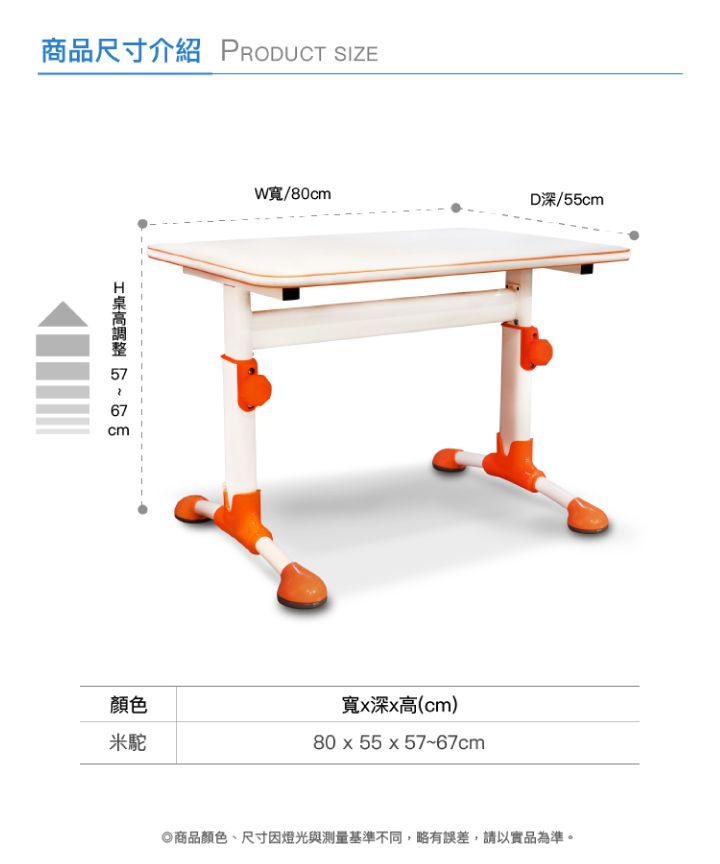 來來來!直接上比較圖,桌高(不含置物架)可從57cm調整至72cm,從幼稚園大班一路用到高中畢業都可以喔!