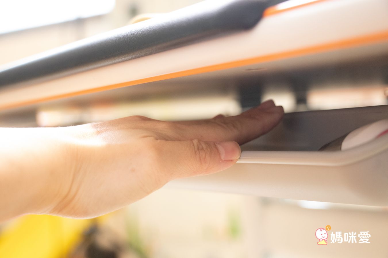 編媽的手放在桌板與桌面之間也不會夾到!