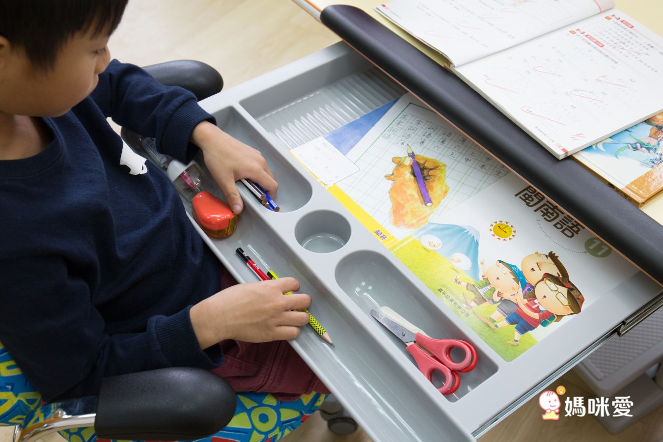 分隔設計可以分類擺放的文具、書籍,讓抽屜不會一團亂!