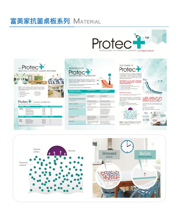 桌面使用容易清潔、耐刮的美耐板材質,且通過檢驗為E1等級的低甲醛板材喔!