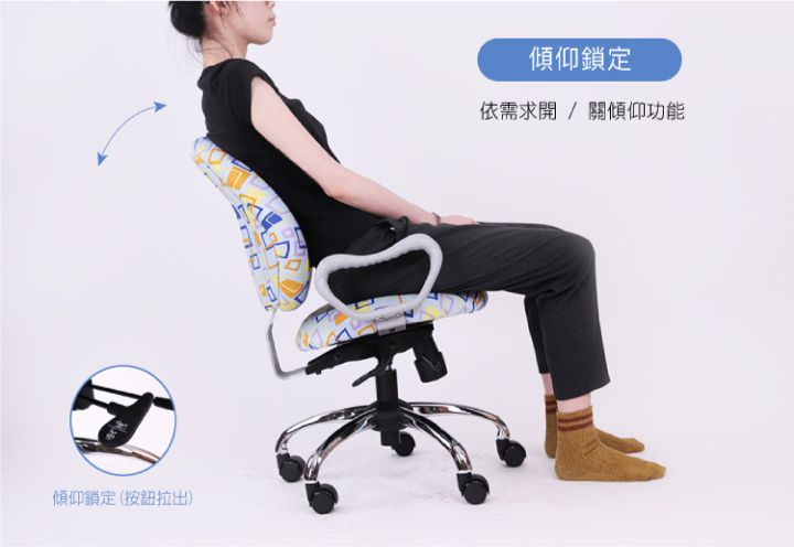 1.巧藝椅有後傾設定(也可鎖定);神采飛揚椅無法後傾