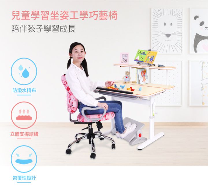 作為一張幫助孩子好好讀書的椅子,一定要採用人體工學設計,加上支撐性足夠、耐用度高、好清潔的椅墊材質,坐得端正又舒服,輔助寶貝達到最佳的坐姿!