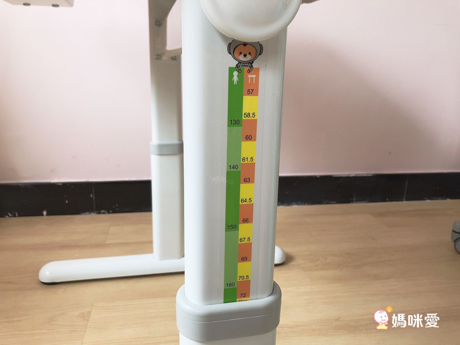 桌子的側邊有刻度以及建議的身高讓媽咪參考,轉到最高為72cm~如果看到紅色的STOP就不要再硬轉囉!不然桌子的轉軸可能會斷掉!!!到時候還要再花一筆維修費用啊!!!所以轉軸一定要收起來!