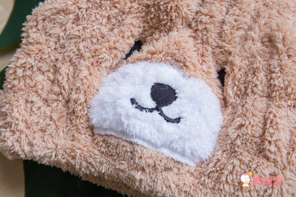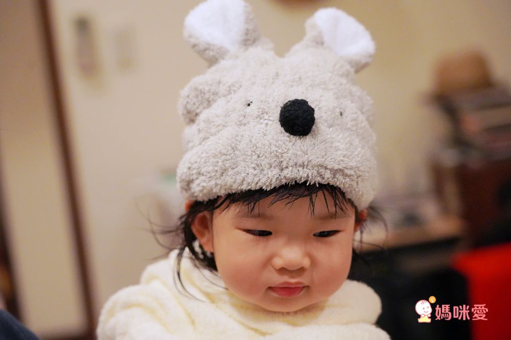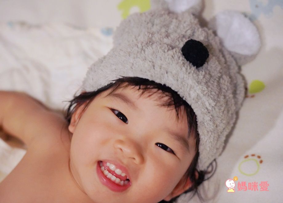 吸水效果十分好,寶貝吹髮時間至少可以省去一半!由於實在太可愛了,編媽也會當作外出的造型保暖帽哩~