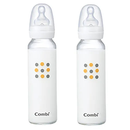 日本 Combi - 母乳力學標準玻璃奶瓶-2入實用組-白色-240mLx2