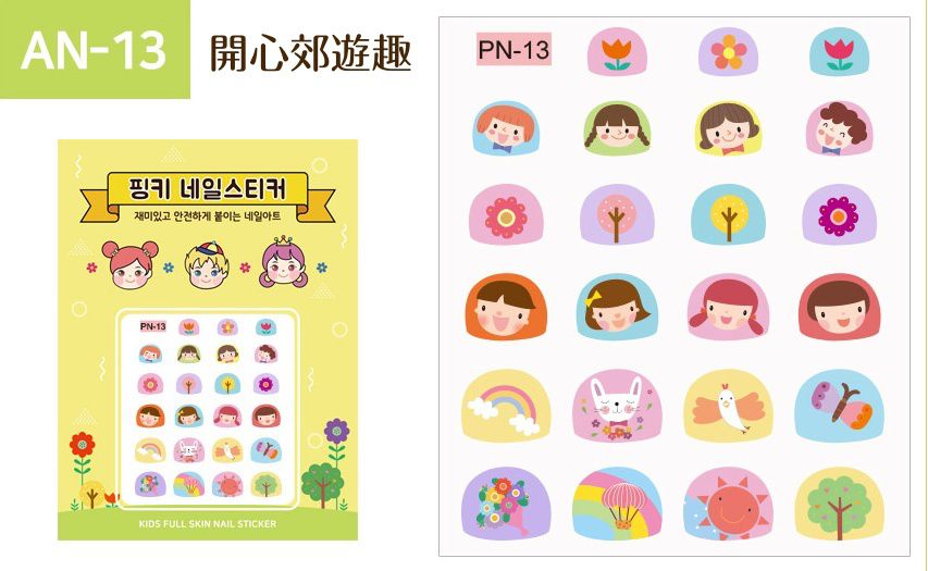 一秒就能完成美甲!就像貼貼紙一樣簡單,小朋友也能輕易上手~(每一大張裡面有23小張,大小不同喔)