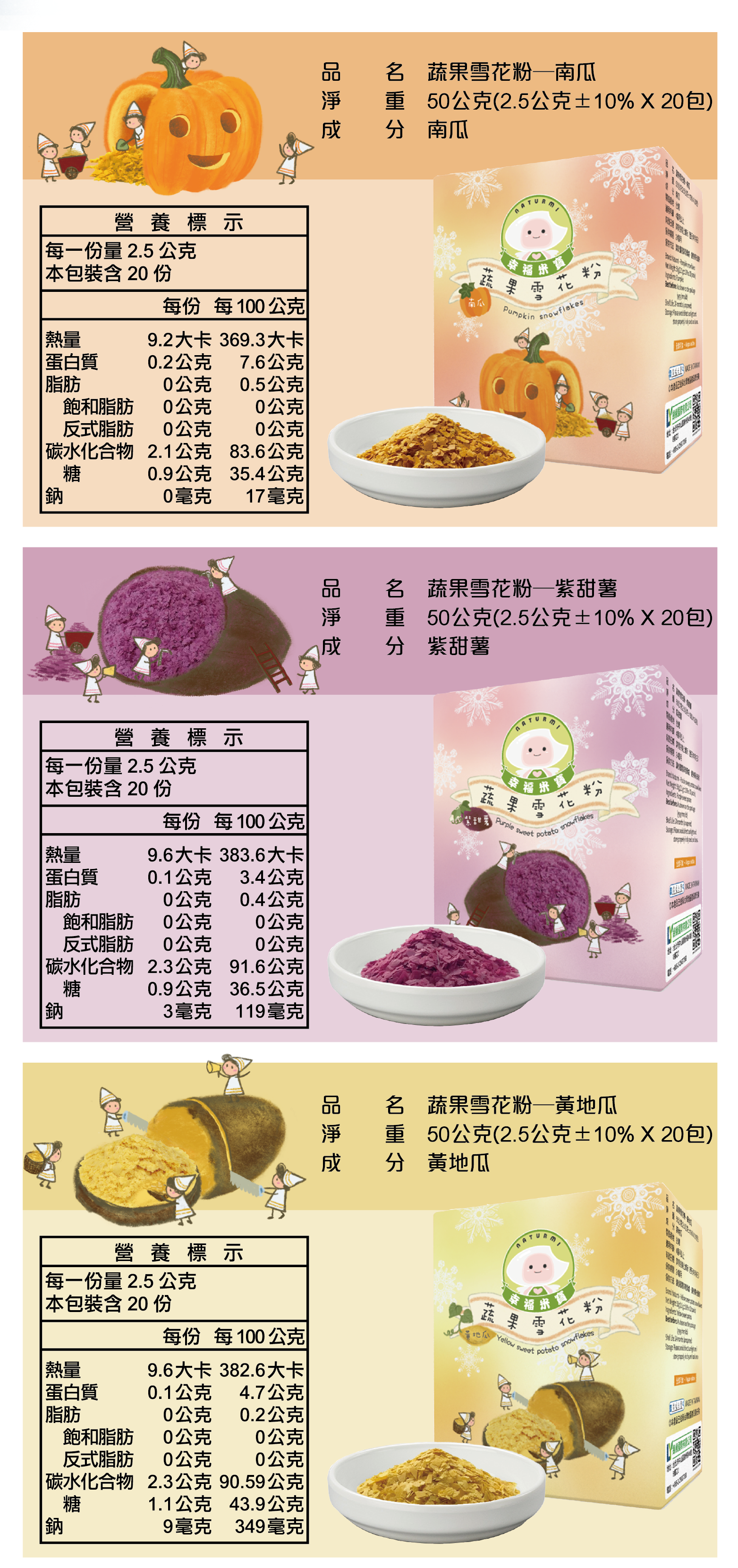 像是南瓜和甜薯都吃得到淡淡的蔬菜甜味,很天然,連編媽自己都很喜歡,也會加進熱牛奶一起喝,顏色好看心情就療癒,而且無添加!!