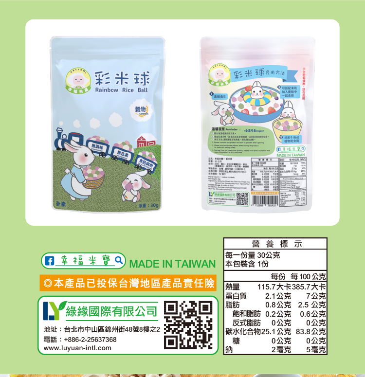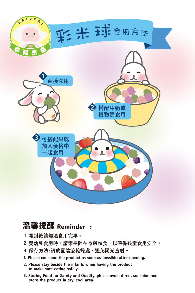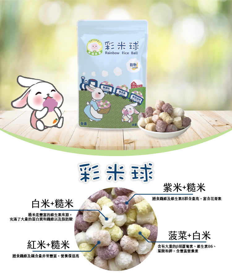 還有這款可以直接當點心,或是加在牛奶、優格中的彩米球!繽紛的色彩全都是來自植物本身的顏色,不添加任何色素、沒有另外調味,也無添加防腐劑喔!