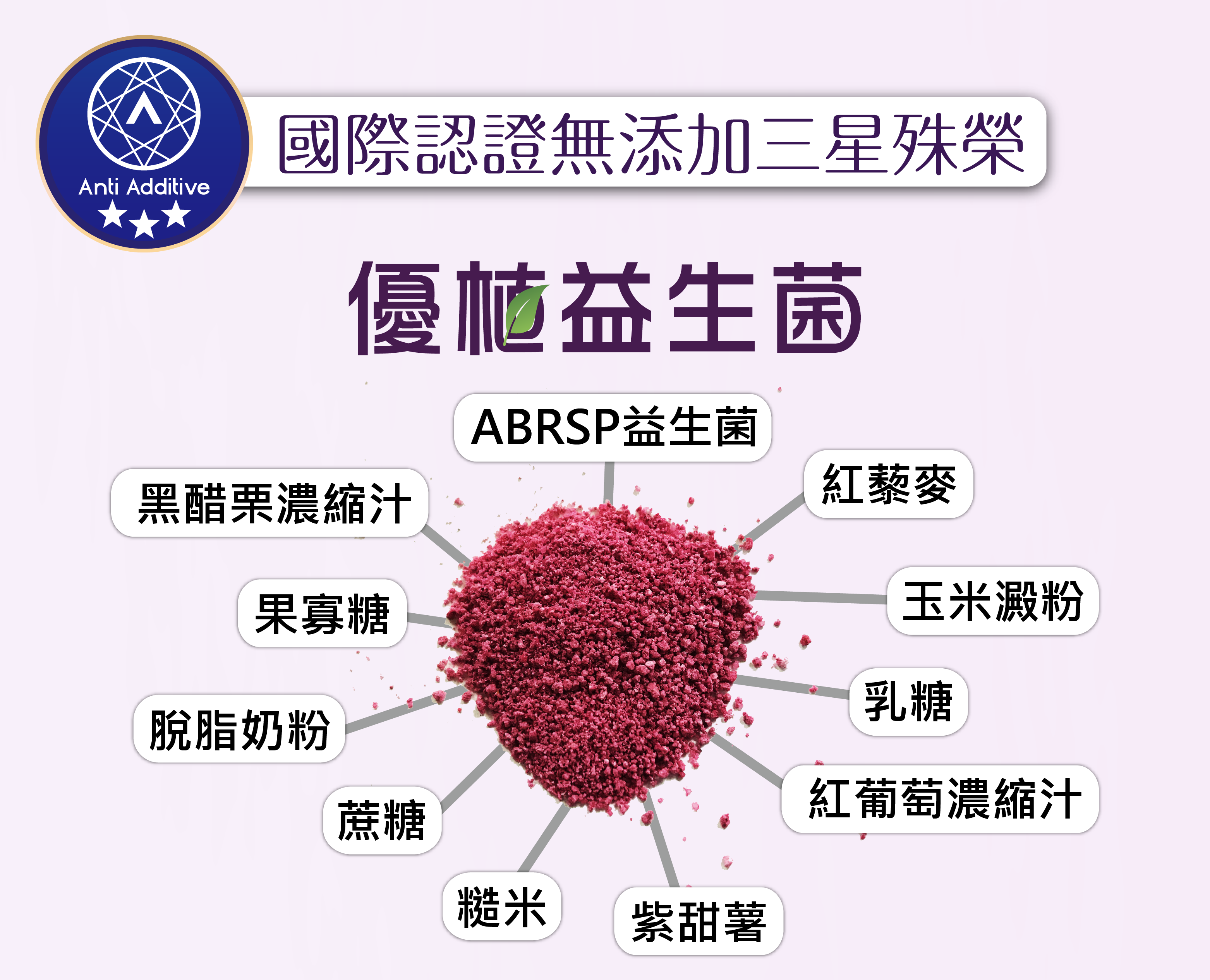 最後要來介紹讓寶寶吃飽飽又順暢的秘密武器-優植益生菌!每一包含有60億的活菌,每包只有7大卡,熱量低無負擔!