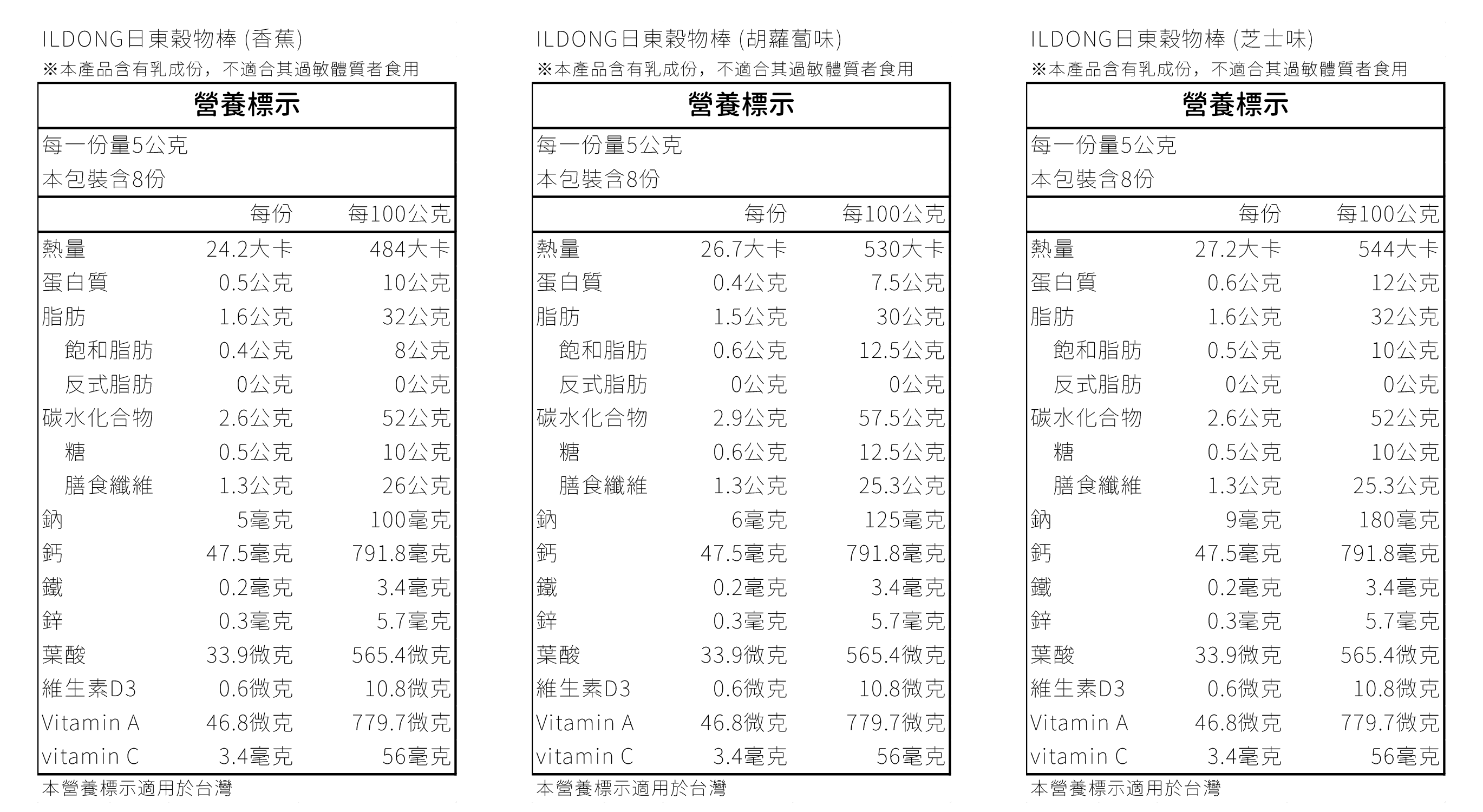 即使是點心也完全沒有添加鹽巴,媽咪們看到米棒裡的鈉含量都是天然食材本身的天然鈉,寶寶好吸收無負擔!