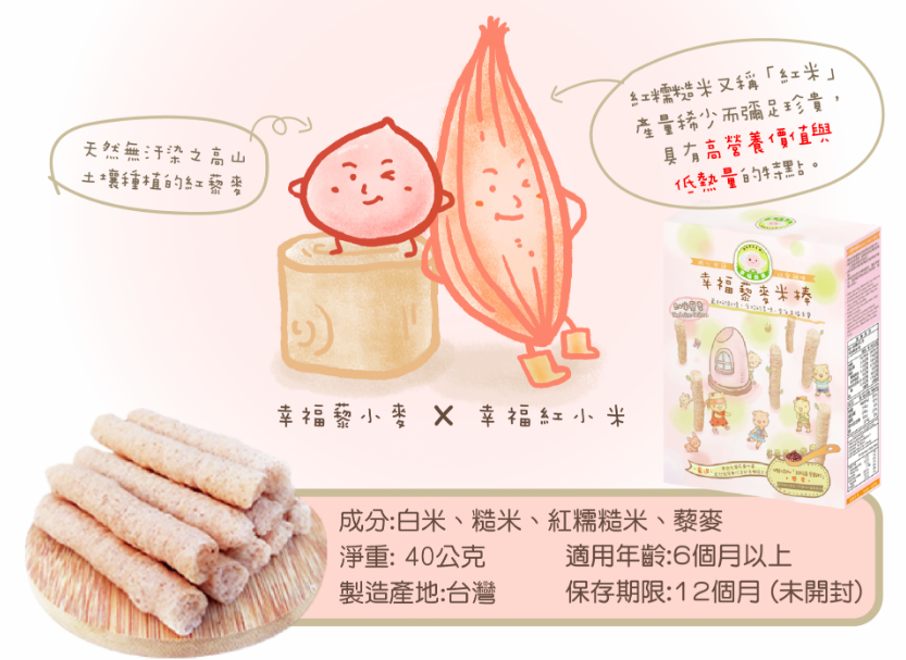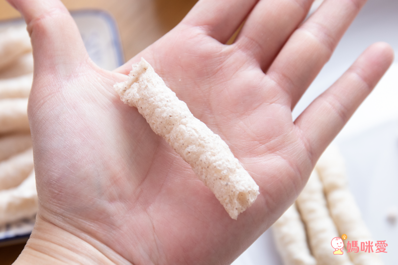 特別使用了台灣農產CAS認證的優質良米製作,還有添加營養「天然植物海藻鈣」,含有鈣、鎂、鐵等豐富微量元素,讓寶寶在磨牙、吃點心的時候也能稍微補充營養!