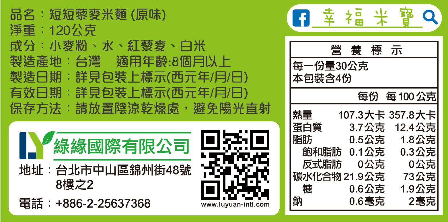 再來要介紹的幸福米麵也很厲害!竟然有6種不同口味耶!!成分也非常單純,就只有「小麥、水、白米」還有該口味的蔬菜食材!無添加鹽,全家都能一起吃呢!
