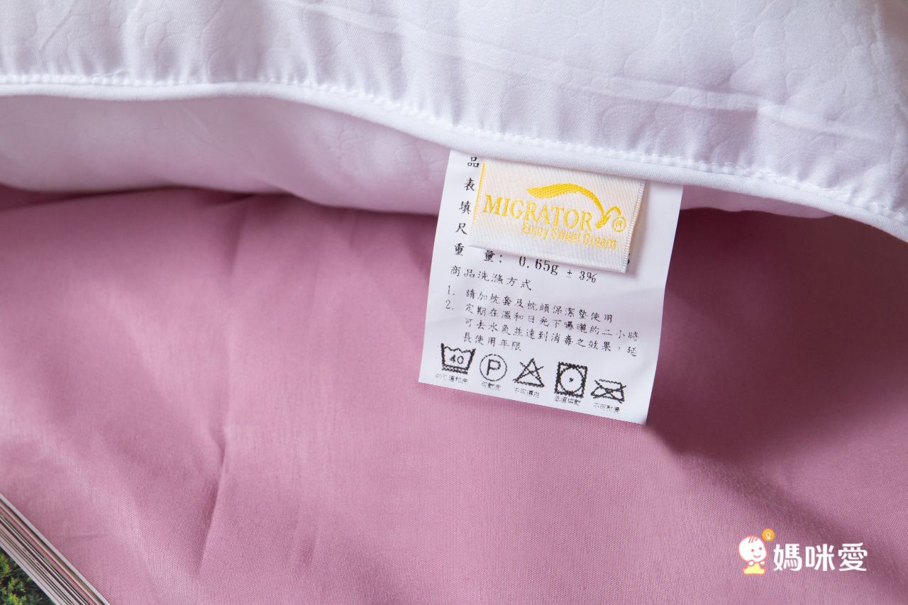 特殊車縫可以固定枕心的填充材料,丟洗衣機也不怕結球。避免枕頭用久了高低不停,睡到落枕,或睡一睡頭滾出枕頭外都有可能啊!