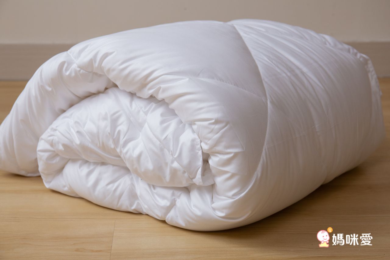 相信對於媽咪來說羽絲絨被真的很麻煩~ 清洗替換真的是一大工程,後來編媽都買可以水洗的羽絲絨被,丟洗衣機就能解決,又不怕會變形或結球。厚度適宜不管台灣的春夏秋冬都可以蓋喔!