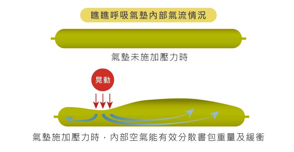 這系列設有一個吹氣閥,可以輕鬆吹氣,並依據孩子背部貼合的服貼度調整充氣量。這個設計最大的特點,就是利用內部氣流來緩衝背負時產生劇烈的晃動,提升穩定和舒適度喔!