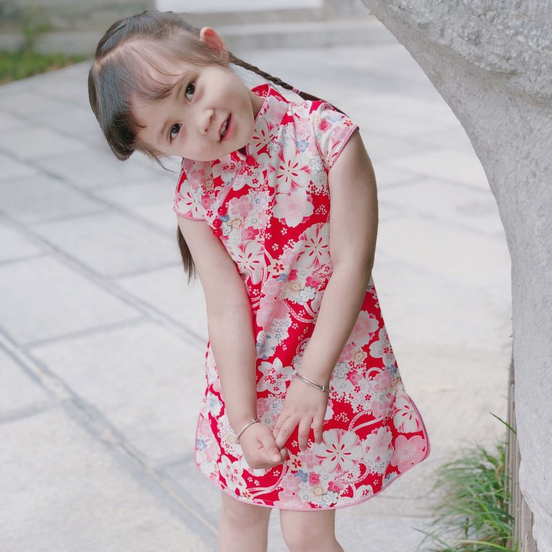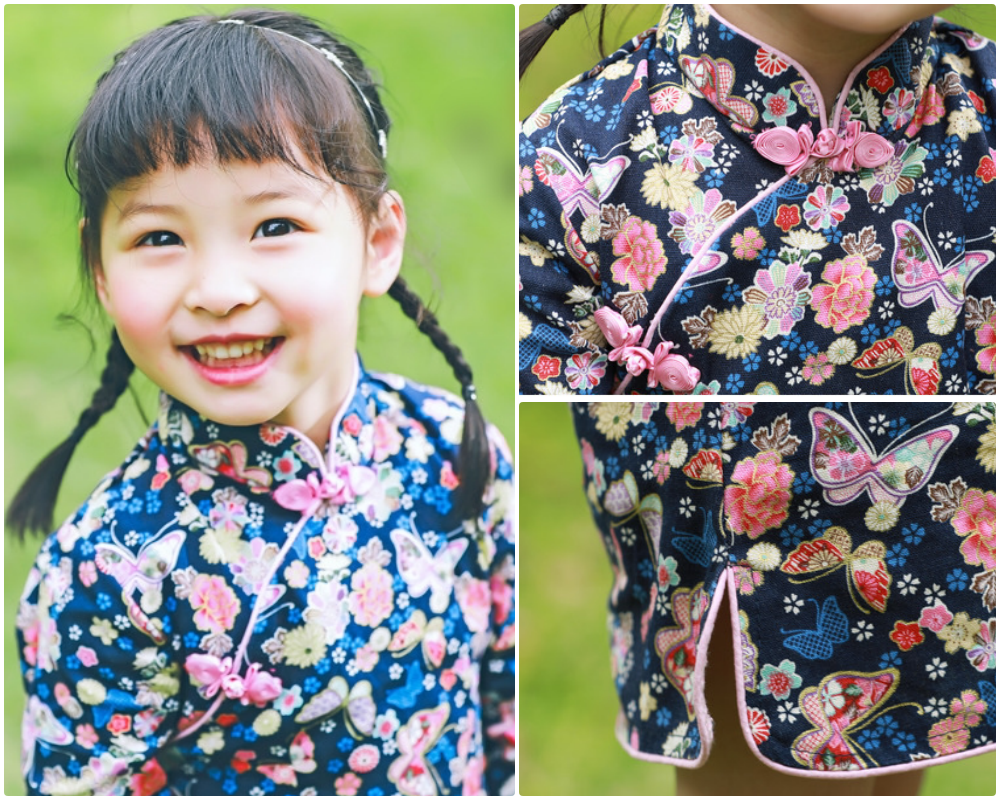 編媽一看到這款立刻被吸引!精細車工+精美花布配上右衽開襟+側襬開衩的改良式旗袍,讓寶貝在這個夏天穿出獨一無二的品味