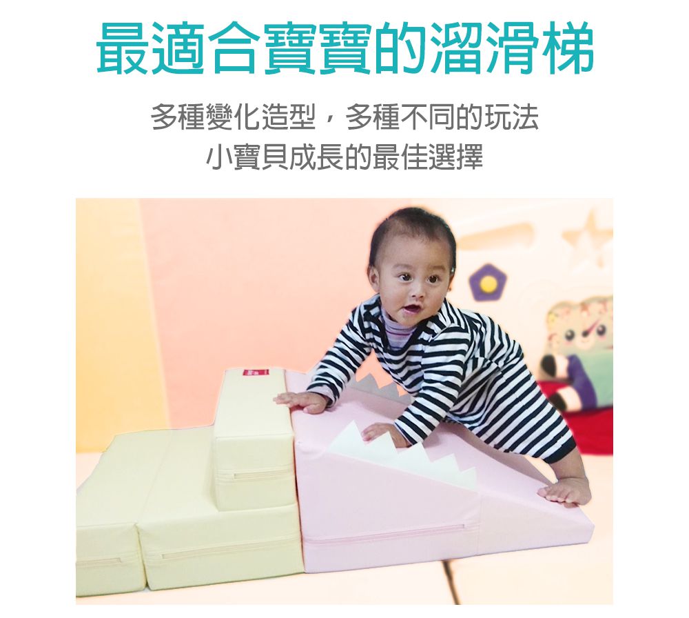 在家也能打造孩子的遊樂園!六個月以上就可以開始玩的溜滑梯,不但能訓練肌力發展,也能變成根據孩子身高調整的小椅子喔!