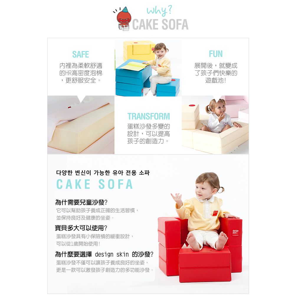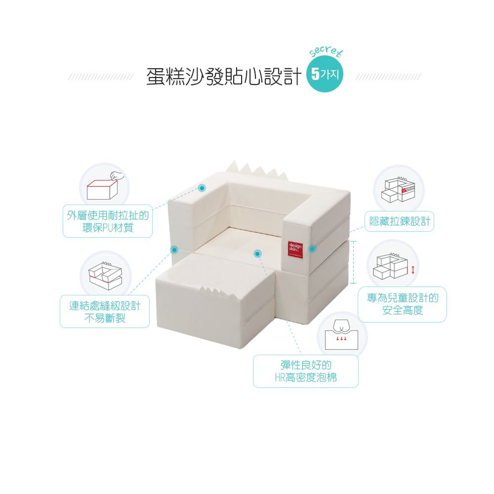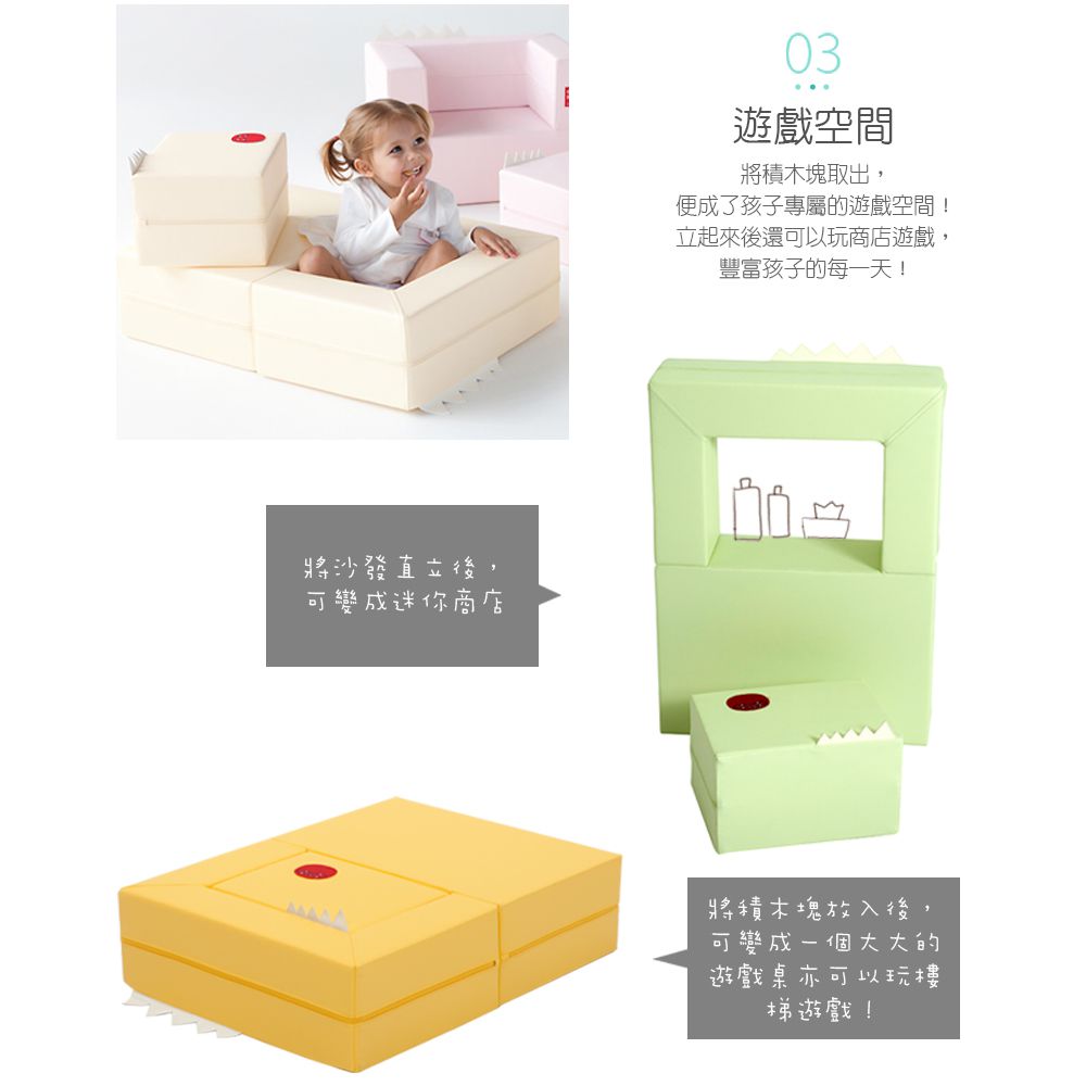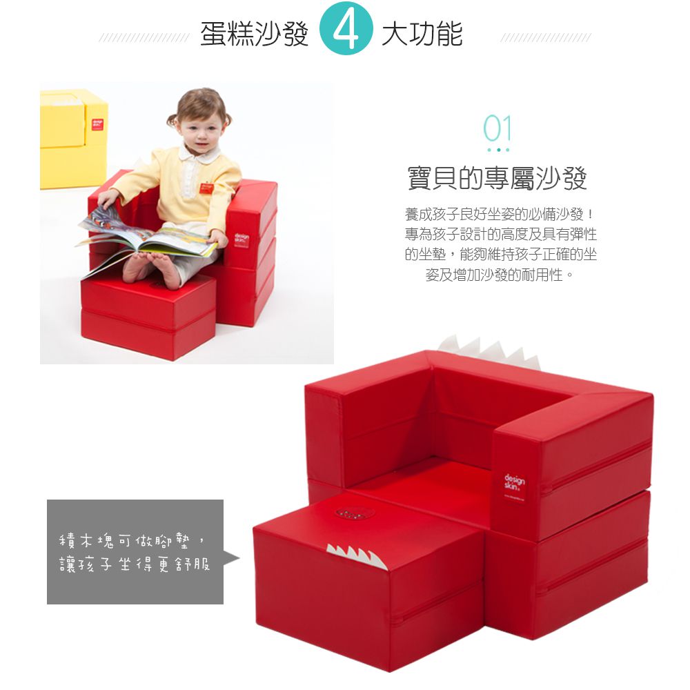 韓國design skin蛋糕沙發化身為最可愛、最有趣的兒童沙發,不只單獨作為沙發,還有更多玩法等待孩子發掘!