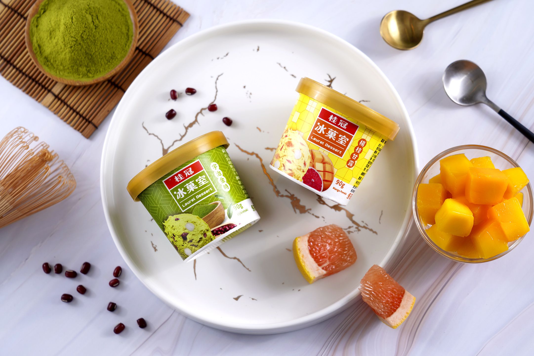【宇治金時冰淇淋 90g/杯】:桂冠跨界日式冰品,多重口感夏日大滿足 甘中帶苦的綿密抹茶冰,使用靜岡抹茶粉,搭配熬煮入味的蜜紅豆,配上Q彈白玉,三重口感交織豐富層次,甘甜清爽,冰沁入裡,夏日舌尖上的消暑饗宴。