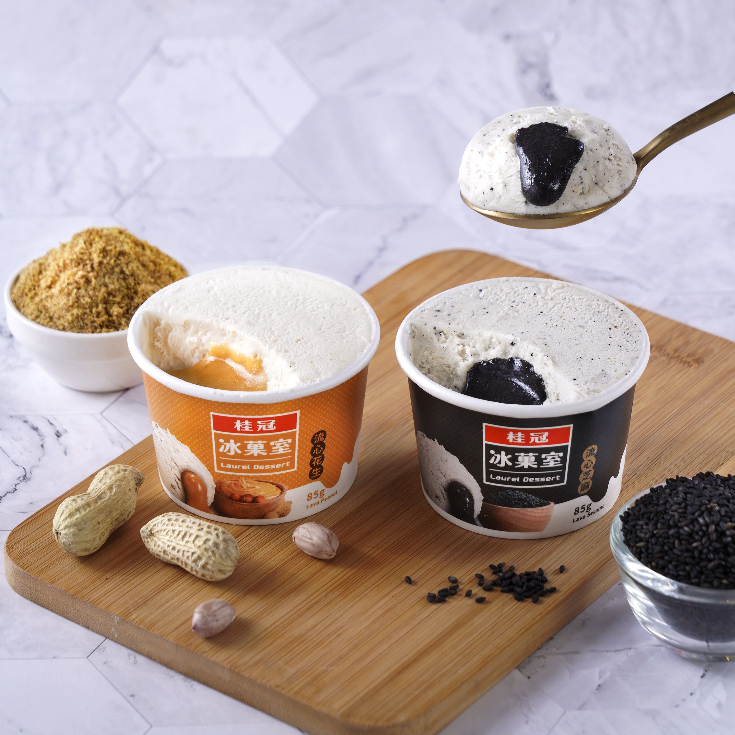 【流心芝麻冰淇淋 85g/杯】:經典芝麻湯圓跨界冰品,流心內餡雙重好滋味 模仿經典湯圓的外皮和內餡,將帶有清新玄米香的冰淇淋加上經典芝麻做成內餡, 製程中使用獨特注射方式,將芝麻流餡注入中心,以特殊技術維持液態流心狀態, 輕輕挖開,濃郁香滑的芝麻內餡流出,雙重口感融成豐富層次,夏天也能暢享湯圓好滋味!