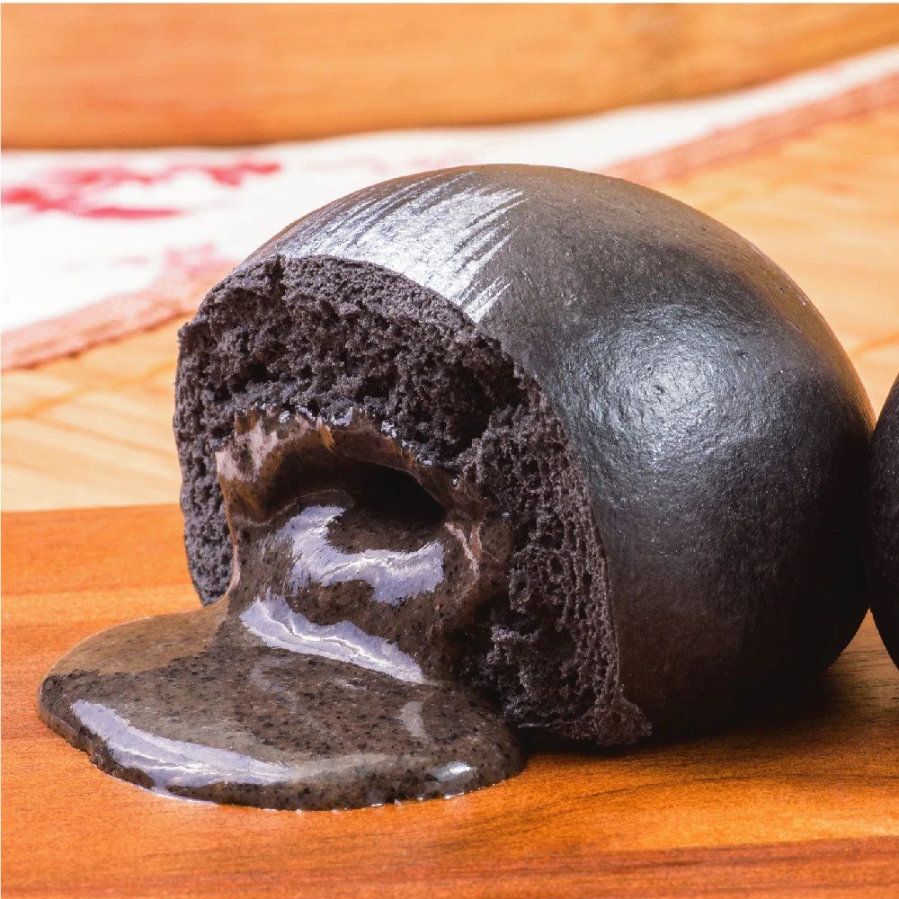 這款純手工製造的高顏值芝麻包,上面食用級銀粉,看起來好高級!包入低溫烘培純黑芝麻粉做成的芝麻內餡,甜度適中香氣十足!