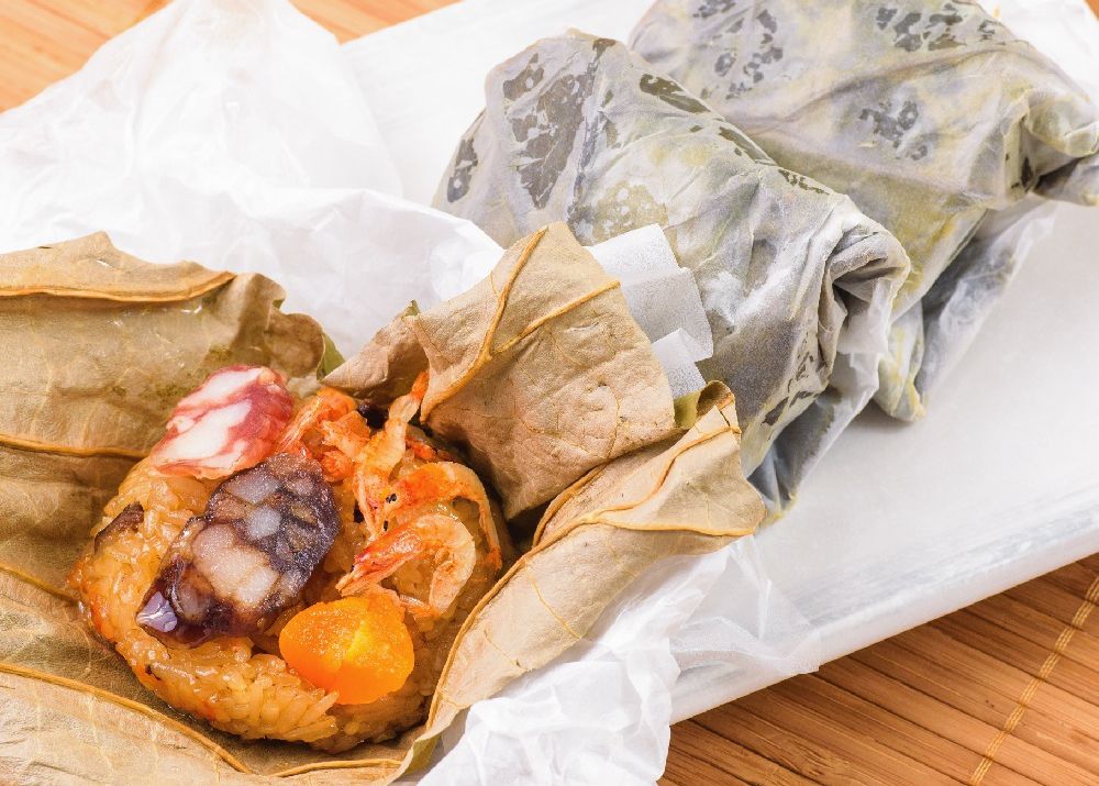 紙包荷葉飯是經典的廣式美食,米飯滲入荷葉香,光是香味就提升一個層次,加上精選鹹蛋黃、鹹香臘腸,每一口都好開胃!