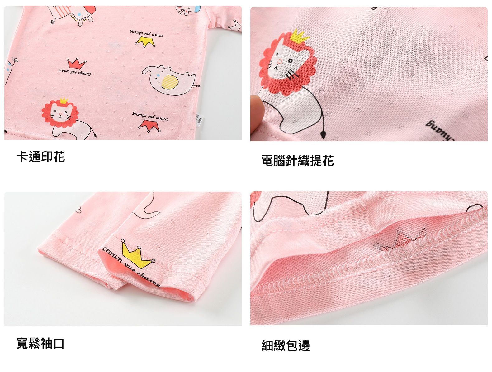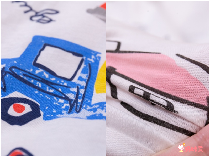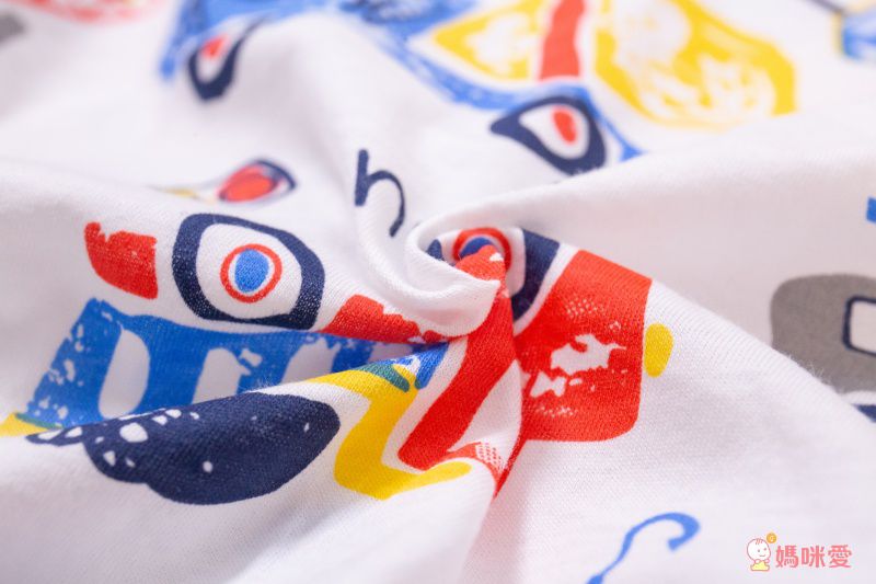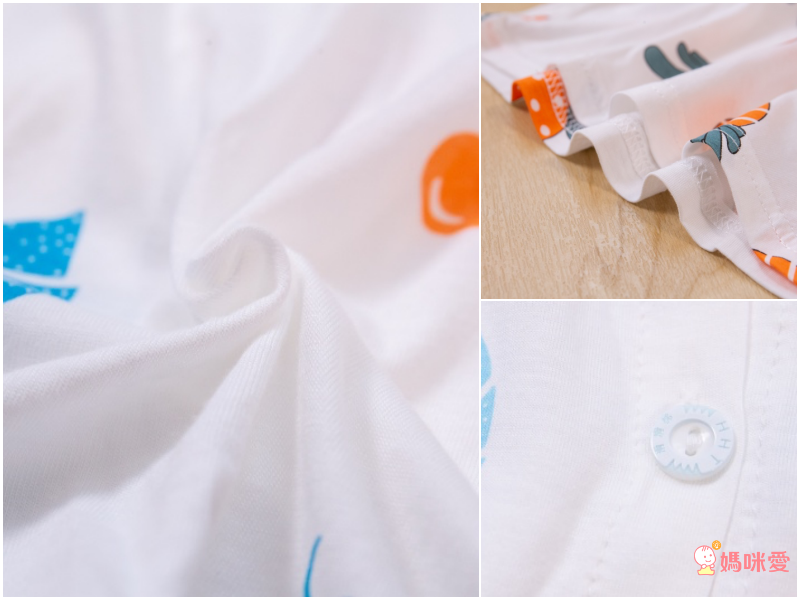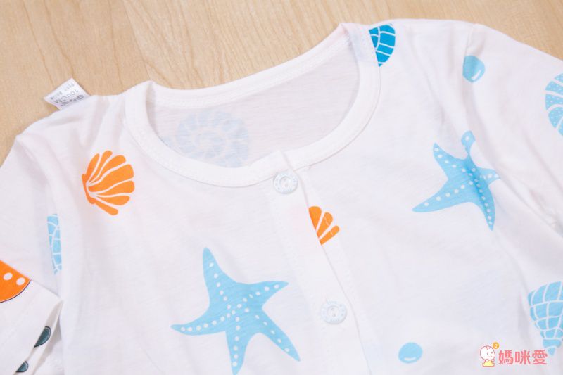 衣服摸起來有微微的彈性,圖案採質感環保染印,圓領設計方便穿脫,舒適不勒不磨頸;袖口跟衣襬的雙車線很精緻,固定性好,洗很多次也不會變形,材質高分過關!(90、100cm有肩扣,穿脫更容易)