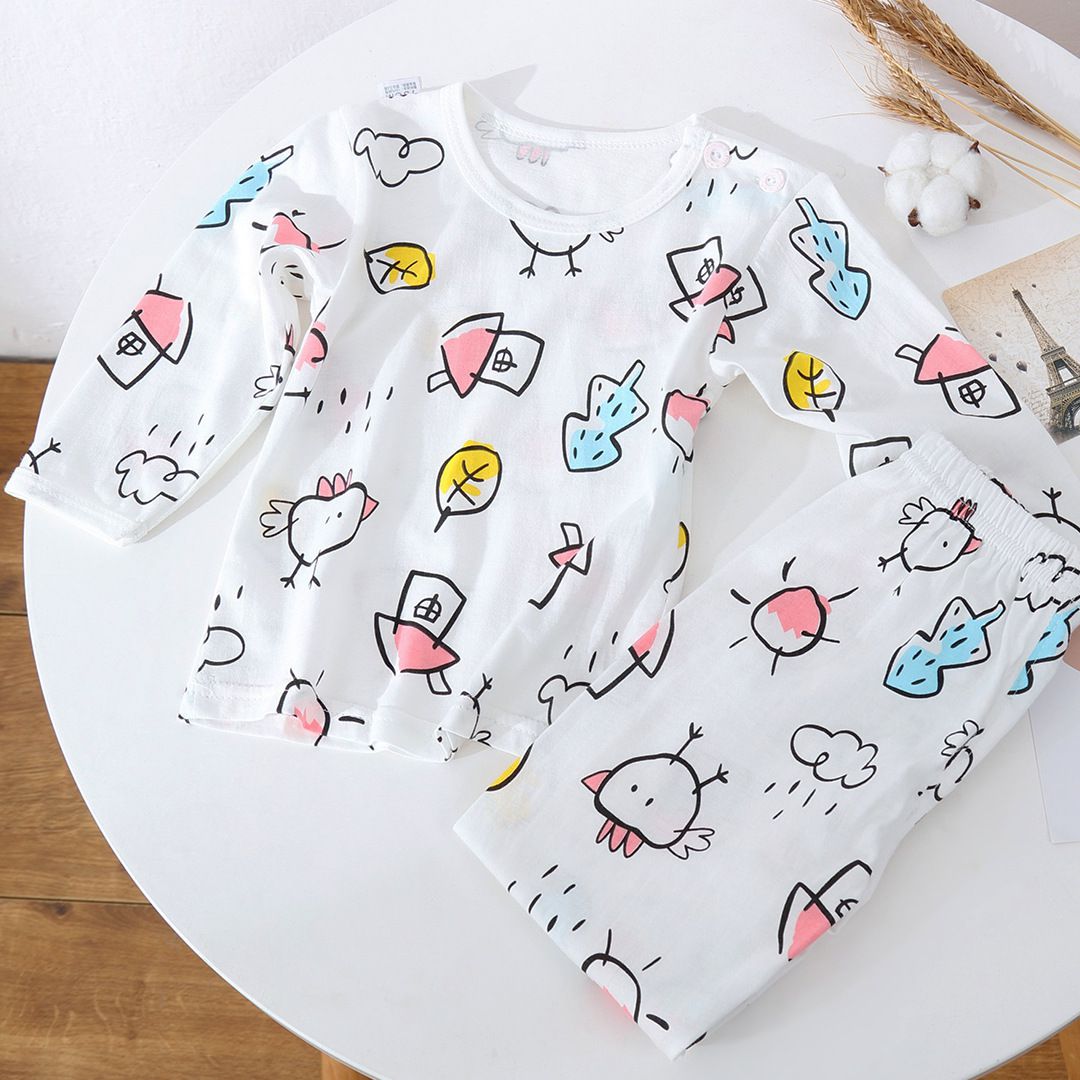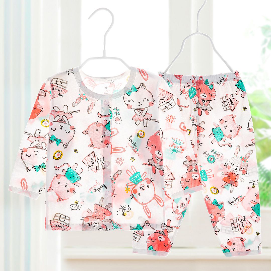 這套睡衣比想像中還要輕薄許多,100%純棉這是一定要的,但是相信媽媽們也都知道即使是純棉衣物還是有厚薄之分!睡衣當然要get透氣、柔軟的。這件設計是扣式上衣,圖案是由兔子、狐狸、樹木......組成的動物森林,屬於中性款,無論男女寶都能輕鬆駕馭。