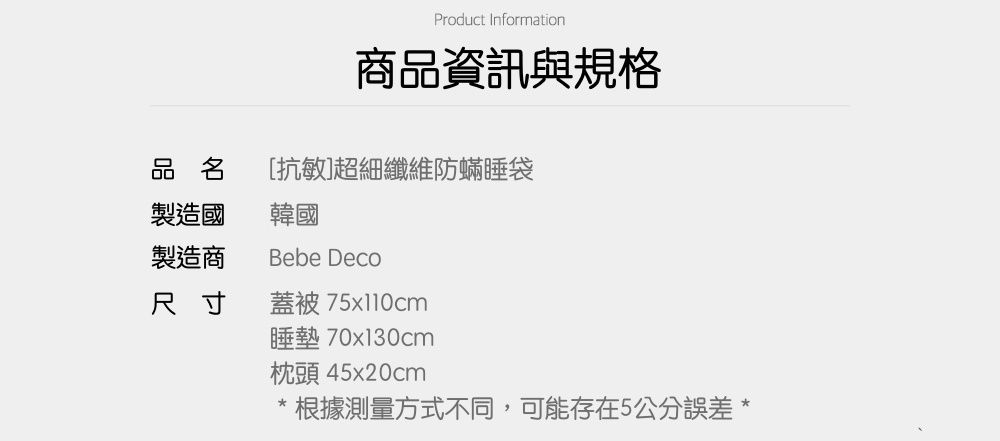 ✧ 60支高密度棉防蟎睡袋
