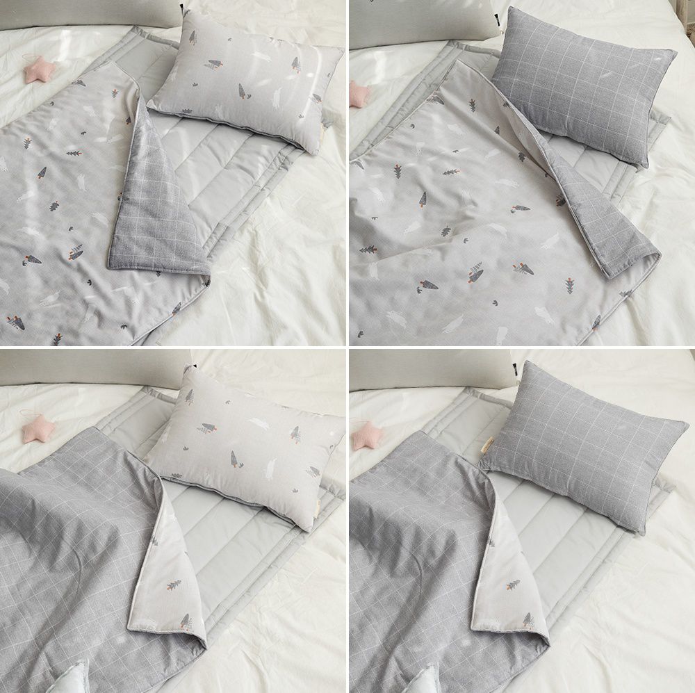 韓國 Bebe Deco - 6cm厚墊飯店級60支高密度棉睡袋-格子灰-被子*1, 睡墊*1, 枕套*1, 枕心*1, 防水收納袋*1