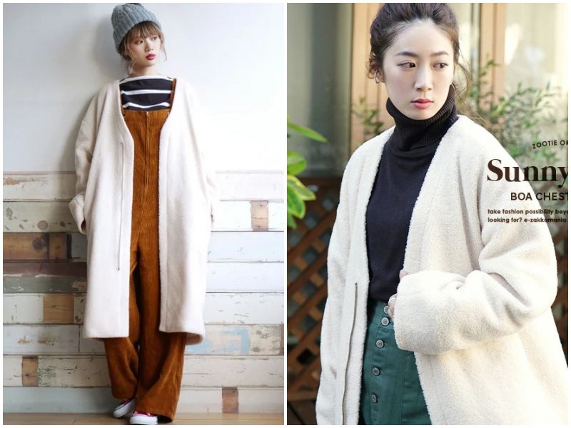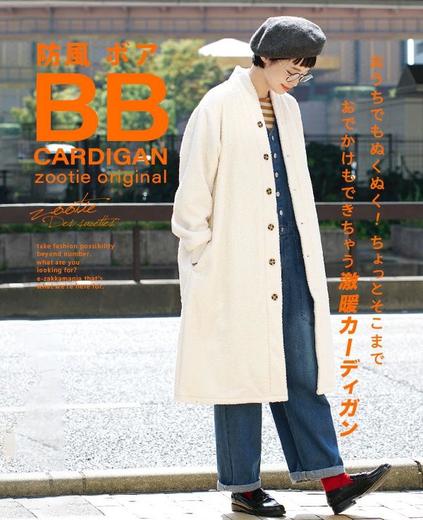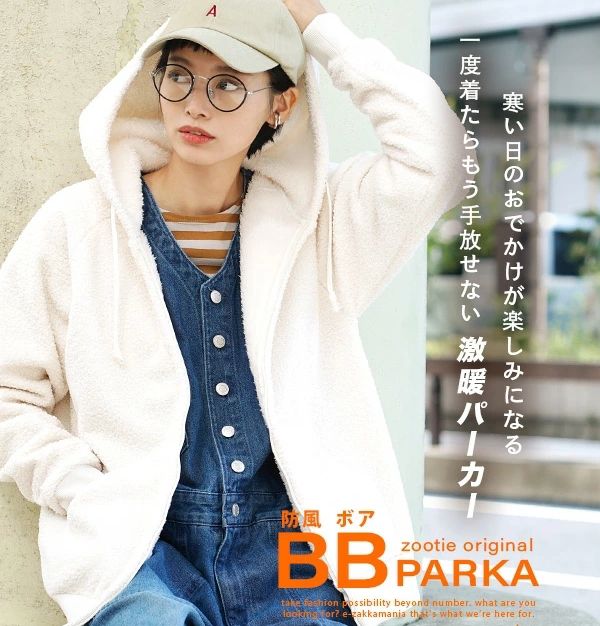 日本 zootie - 防風激暖系列 保暖長版外套-外毛絨-象牙白