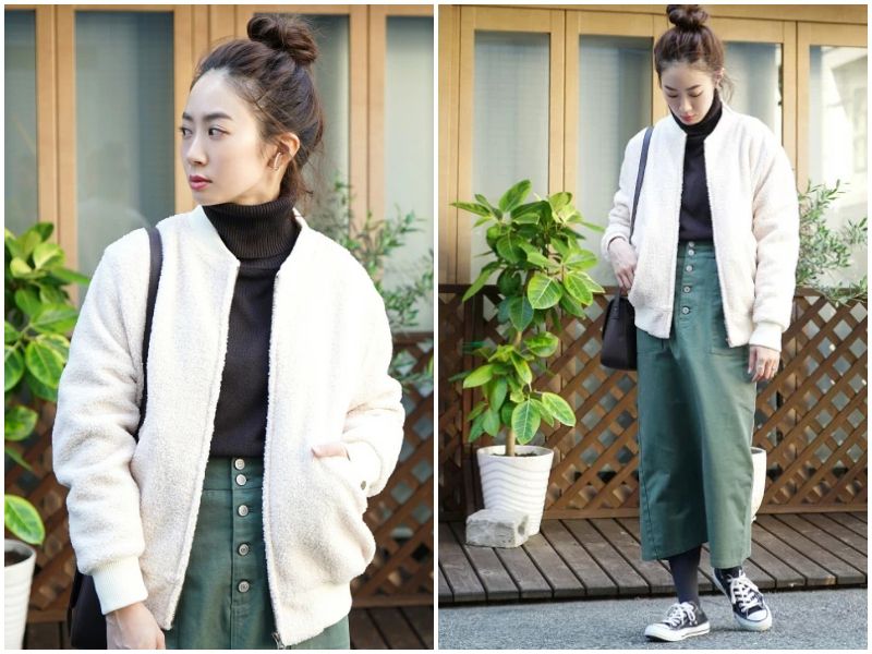 為了看起來又瘦又修長,正面的拉鏈和口袋是造型,不能真的放東西~這樣看下來既有設計感又不會顯臃腫