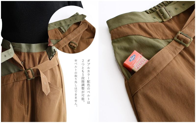 褲子腰帶的部分是做沒有腰帶的簡約設計,調整鬆緊度的繩子是在褲子的內側喲!