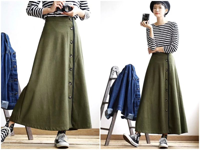這件穿L:長度能遮住腳踝,腰圍還是小緊,但穿起來很合身