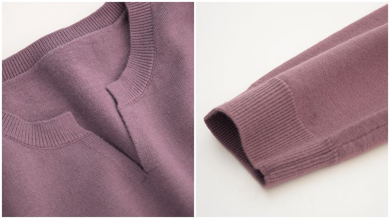 這些小細節就是看出衣服有沒有質感的地方。領口和袖口都有稍微做一點設計,下擺的縫線也處理的很仔細~