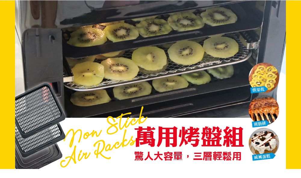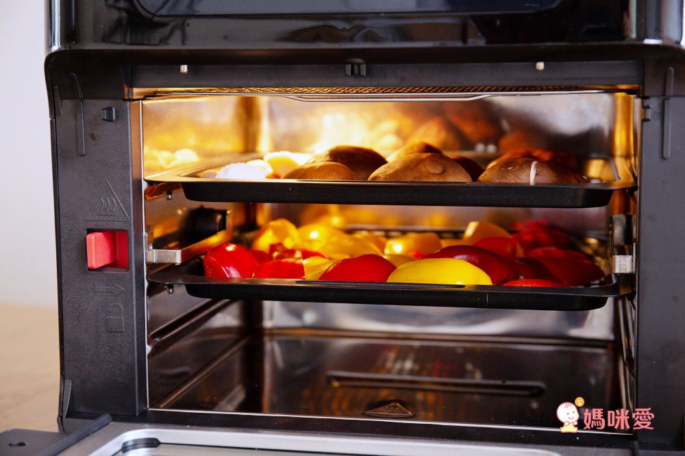 氣炸烤箱的優點就是可以充分利用垂直空間,最多可以一次烤三盤,就算招待客人也不怕來不及出菜唷~