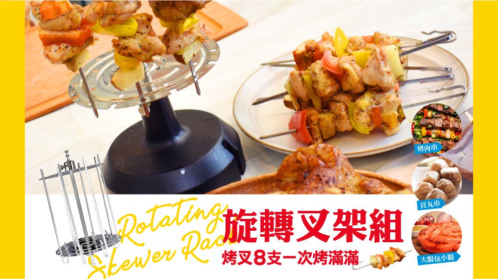 還有附上串烤旋轉架,可以在鐵叉上面插入喜歡的蔬菜、肉類,刷上烤肉醬之後就有美味串燒可以吃囉!