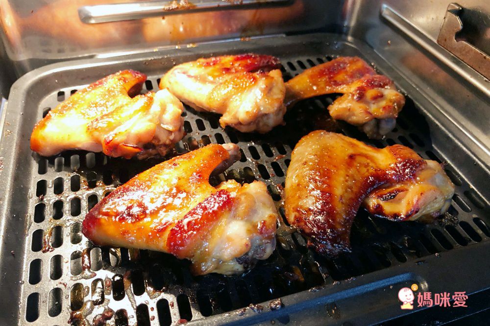 準備雞翅和現成的調味醬,刷上去拿去氣炸,美味的BBQ雞翅就出爐,超簡單零技巧,孩子吃得不亦樂乎~