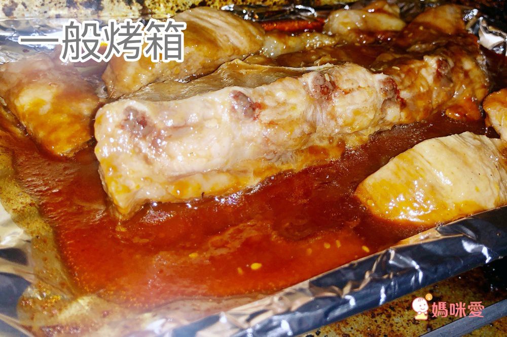 為了實驗氣炸烤箱到底有多厲害,編媽特別拿豬肋排來做比較,分別使用一般烤箱和比利時 KALORIK 旋轉氣炸烤箱,設定相同時間和溫度,結果成品差好多啊~~