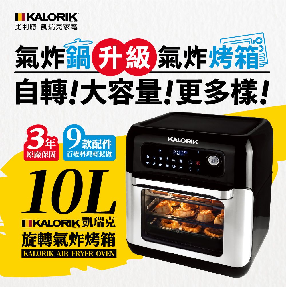 以往媽咪愛挑選的廚房小家電外型都是偏向可愛、日系簡潔風的風格,許多喜歡高冷外型的媽咪一直許願,希望也有時尚、科技感的家電可選擇!編媽這次精心挑選了,比利時90年的口碑老品牌——【KALORIK 旋轉氣炸烤箱】,外型好看,內在優秀1機抵10機,不放心白牌氣炸鍋的媽咪也可以安心入手。本次是買 1 送 10 配件的豪華組合,還有業界唯一3年保固,品質有保障!