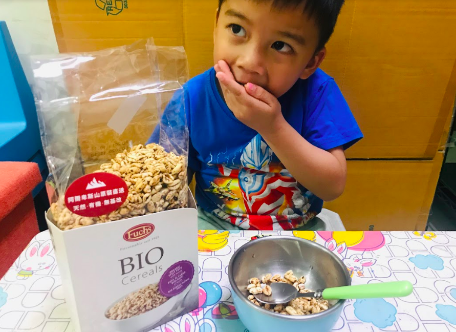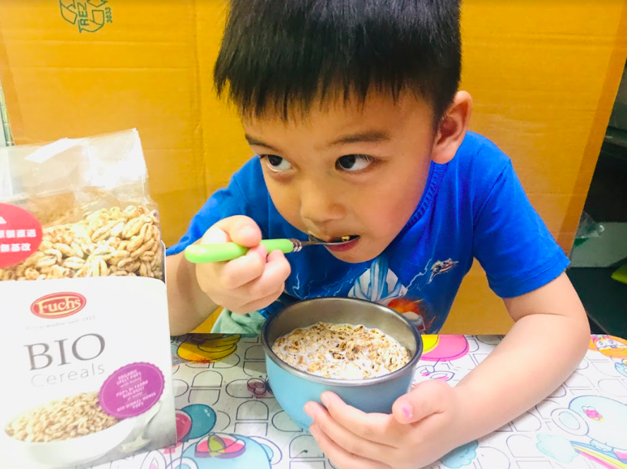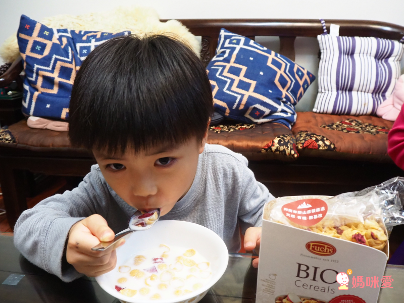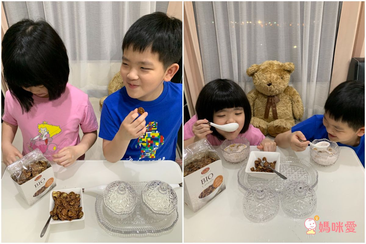 假日早上比較晚起,為了讓孩子吃得下中餐,所以早午餐就決定來點穀片加牛奶囉!5歲的叡叡很喜歡喀滋喀滋的口感,媽咪平常不太給他吃甜的零食,像這款穀片對他來說就剛剛好,媽咪可以安心放行~~