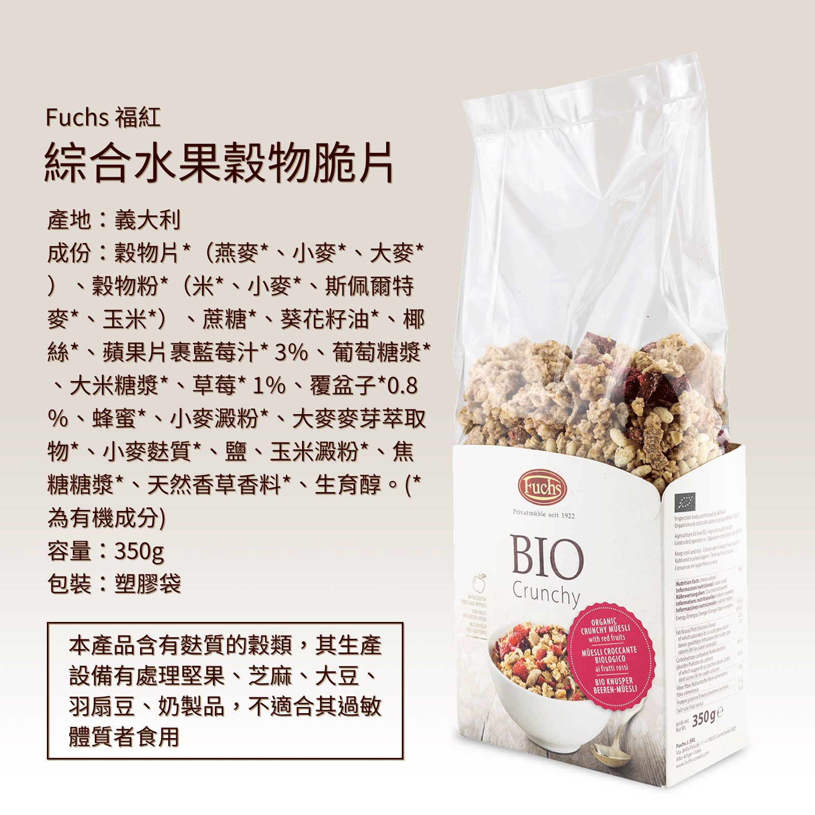 嚴選阿爾卑斯山的天然穀物,水果乾更是有機水果片製成,沒有人工色素與香料,每一口酥酥脆脆的都是實在好味道呀~~