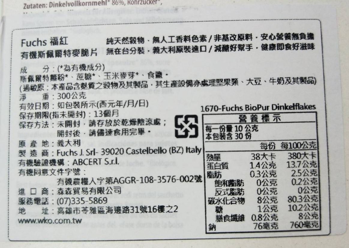 今天要來介紹的【福紅】有機穀物麥片,是從義大利有機進口的頂級穀片,背面也有農糧署認證字號,低卡高纖,媽咪絕對可以很放心!